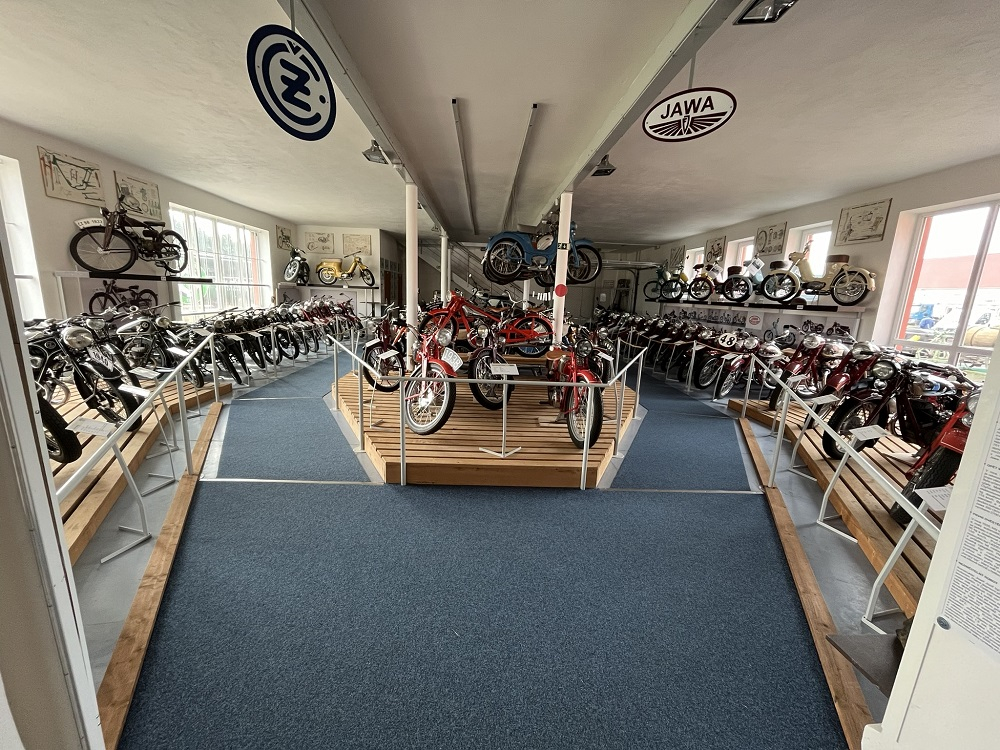 Prvním bodem programu bylo Muzeum veteránů v Radovesnici II, které se pyšní rozsáhlou sbírkou historických vozidel, převážně motocyklů a traktorů. Prohlédli jsme si zde stroje od prvopočátků motorismu až po současnost, zejména dámská část účastníků pak ocenila expozici řemesel a zemědělství ve špejcharu.